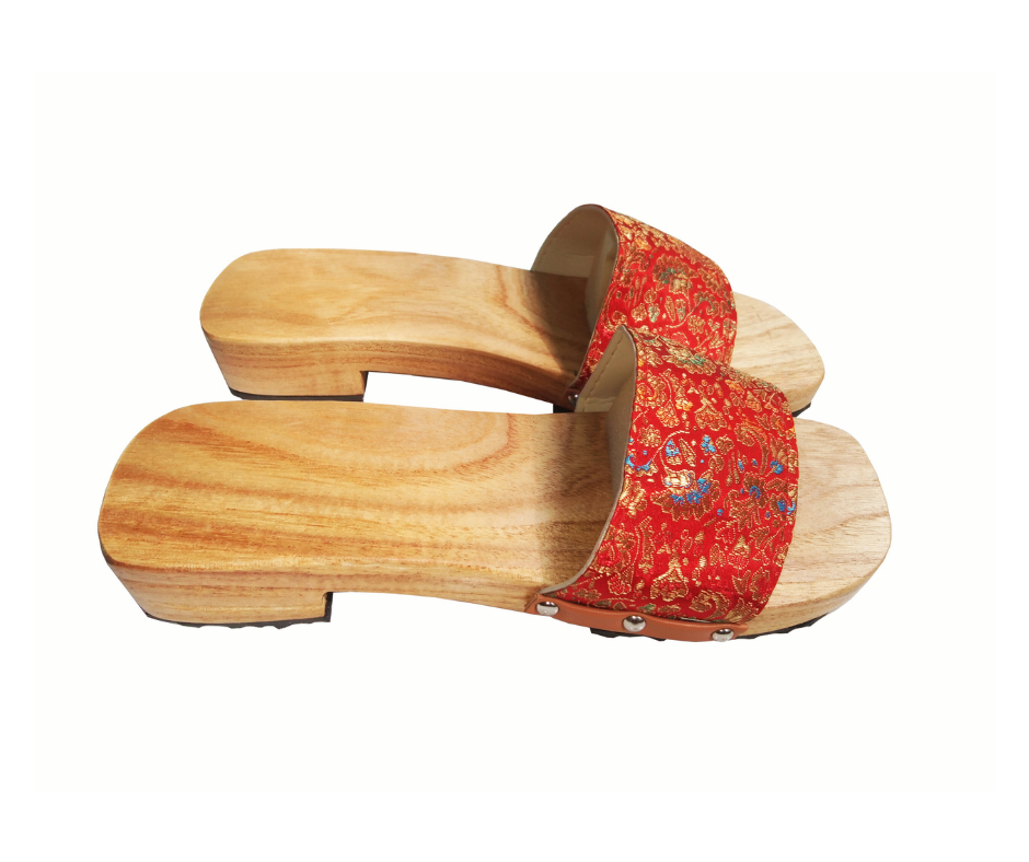 + Đế guốc trơn, không chạm khắc, phô diễn trọn vẹn vẻ đẹp tự nhiên của vân gỗ. Thiết kế tối giản này nhấn mạnh sự sang trọng, tập trung vào chất liệu và màu sắc quai guốc.